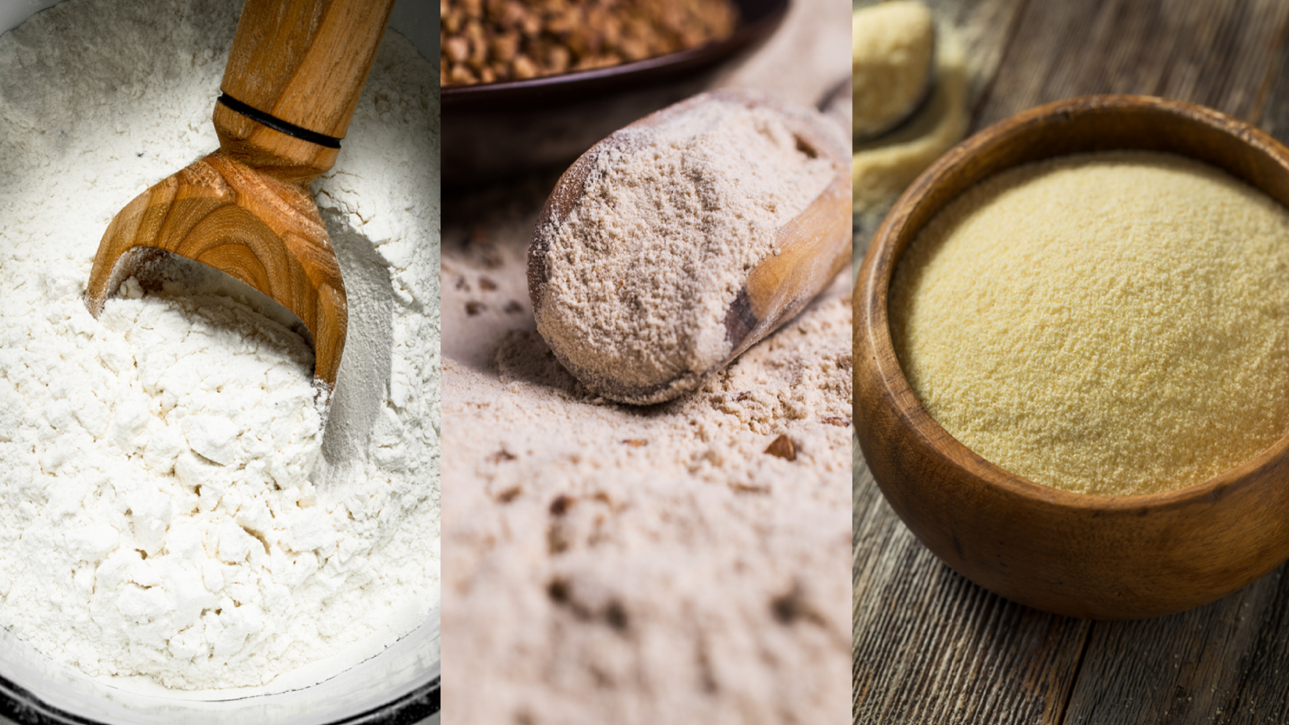 La harina de trigo integral se obtiene de la mezcla de harina y salvado derivados de la molienda del grano de trigo. Se utiliza en la preparación de panes, galletas, pasteles y otros productos horneados con un enfoque más saludable, ya que aporta más fibra, vitaminas y minerales que la harina refinada. También se usa para espesar salsas o como parte de mezclas para empanizados.